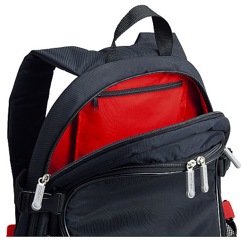 40Lの大容量バックパック 最下段にボールやシューズが収納できるネット付きボール・シューズ収納ネット付き中国製幅35×高さ58×奥行19cm黒×青・黒×赤